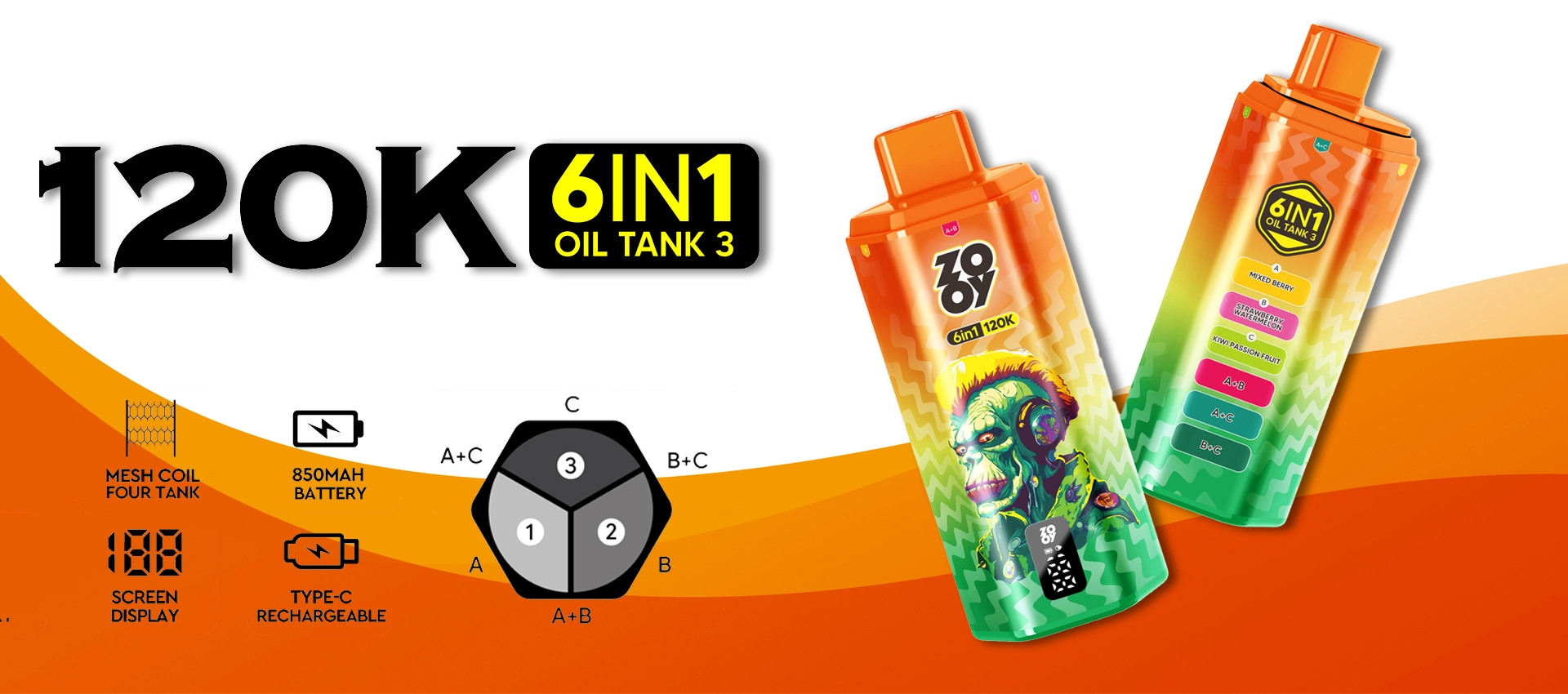ZOOY 6 IN 1 120K – Hybrydowe Smaki 3w1 z Ekranem i Trybem Turbo